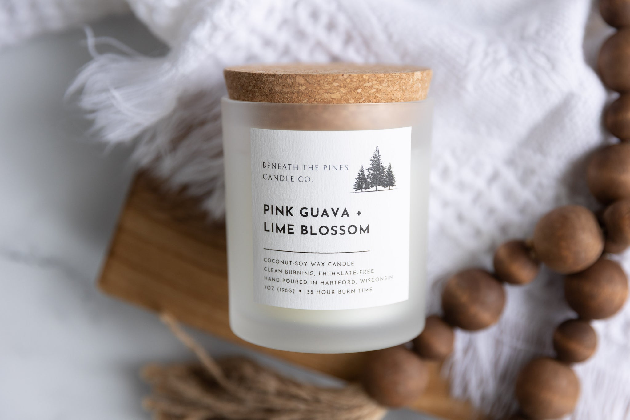 Experience a refreshing and serene ambiance with our Pink Guava + Lime Blossom fragrance. This delightful blend of exotic fruits and warm vanilla is complemented by a tranquil ozonic accord of bergamot and lime blossom. Indulge in the soothing scents of bamboo leaves, water lily, and soft santal, topped with notes of woodsy musk.