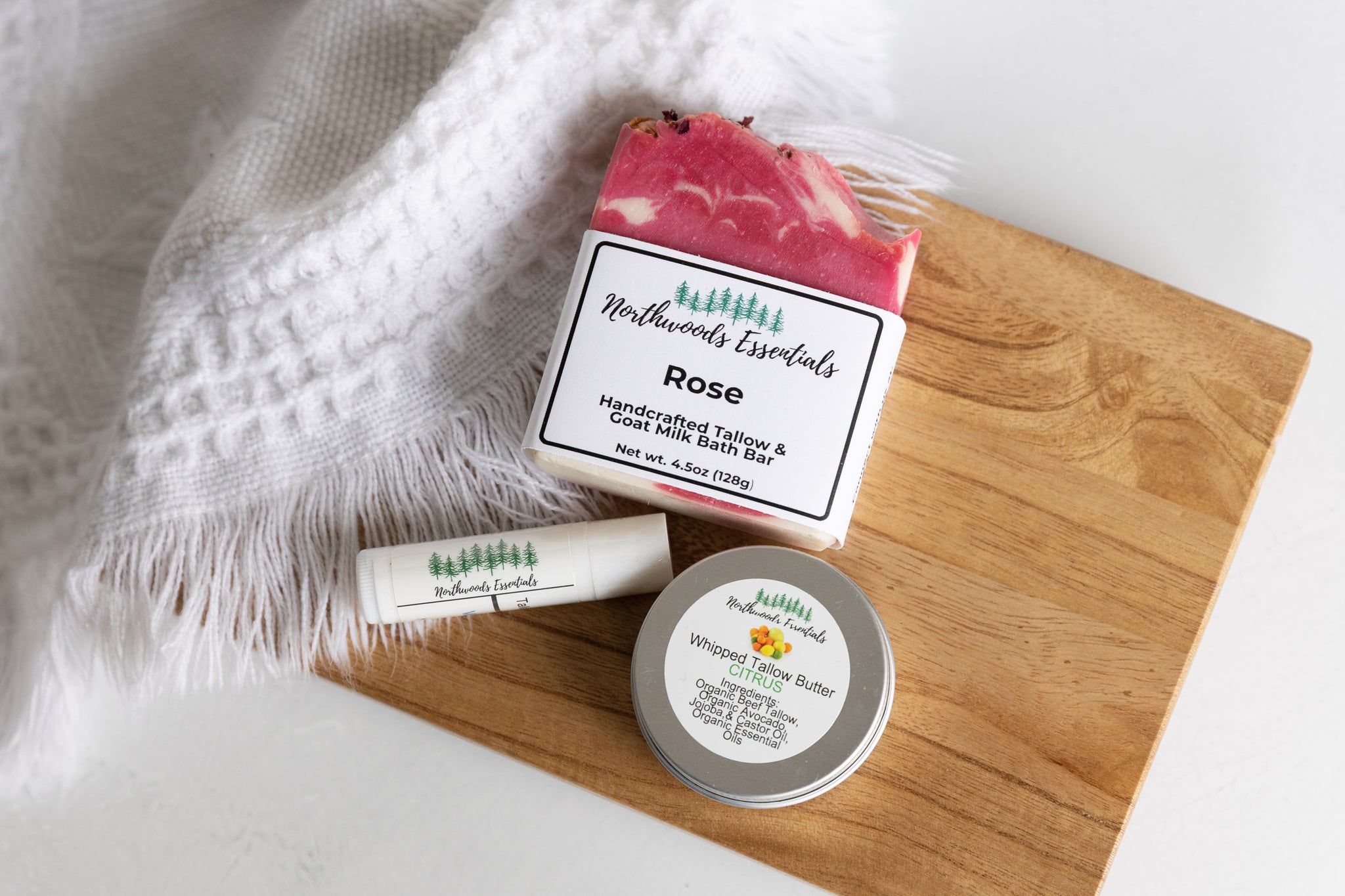 Our partner for this box is Northwoods Essentials. Northwoods Essentials is a women-owned business from West Bend, WI. Their focus is rooted in simple, wholesome ingredients that nourish skin the way nature intended. From their handcrafted tallow soaps and soothing lip balms, to our rich skin-loving tallow body butters, every product is made to be clean effective and deeply moisturizing.